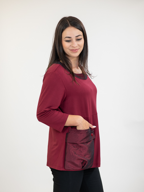 Ženska majica okruglog vratnog izreza . Majica je po sastavu 92% viskoza i 8% elastan, ugodna je za nošenje i lako se održava. Ova majica odgovara svakom tipu ženske figure i prigodna je kako za svečanije prigode tako i za odlazak na posao te je idealna za toplije dane uz suknju ili pak hlače.