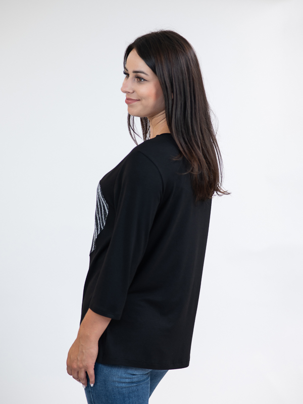 Ženska majica okruglog vratnog izreza . Majica je po sastavu 92% viskoza i 8% elastan, ugodna je za nošenje i lako se održava. Ova majica odgovara svakom tipu ženske figure i prigodna je kako za svečanije prigode tako i za odlazak na posao te je idealna za toplije dane uz suknju ili pak hlače.