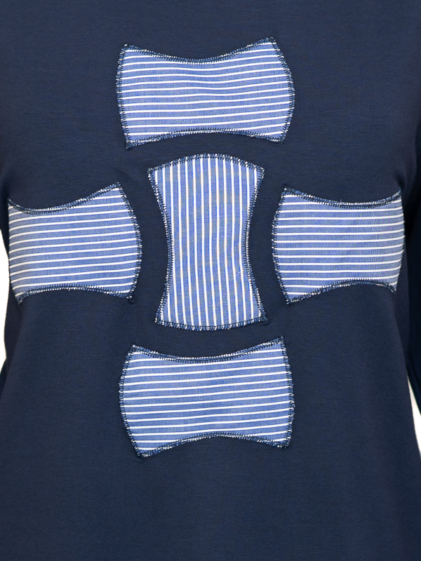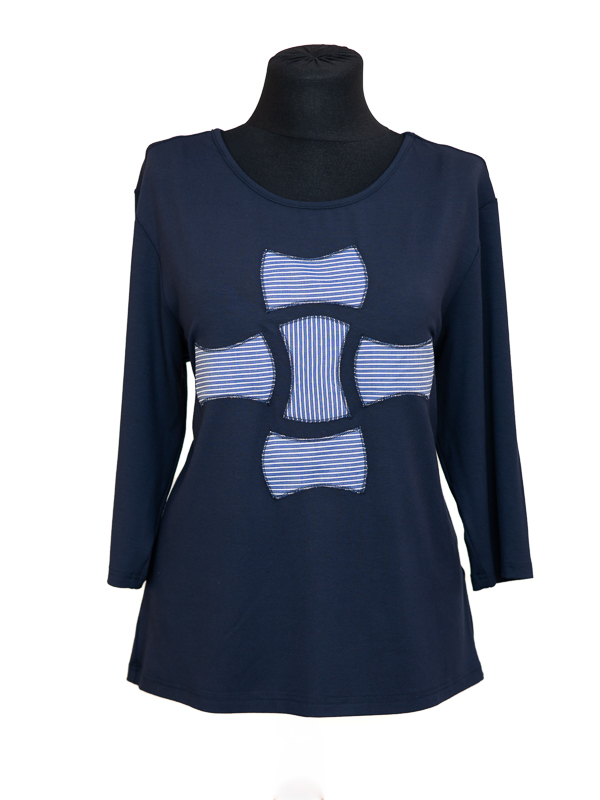 Ženska majica okruglog vratnog izreza . Majica je po sastavu 92% viskoza i 8% elastan, ugodna je za nošenje i lako se održava. Dezen je vrlo urban i u  bojama sezone. Ova majica odgovara svakom tipu ženske figure i prigodna je kako za svečanije prigode tako i za odlazak na posao te je idealna za toplije dane uz suknju ili pak hlače.