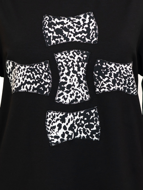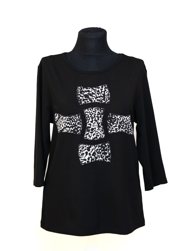Ženska majica okruglog vratnog izreza . Majica je po sastavu 92% viskoza i 8% elastan, ugodna je za nošenje i lako se održava. Dezen je vrlo urban i u  bojama sezone. Ova majica odgovara svakom tipu ženske figure i prigodna je kako za svečanije prigode tako i za odlazak na posao te je idealna za toplije dane uz suknju ili pak hlače.