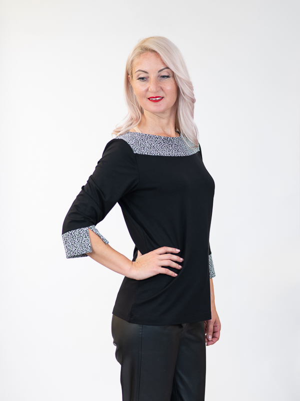 Ženska majica okruglog vratnog izreza . Majica je po sastavu 92% viskoza i 8% elastan, ugodna je za nošenje i lako se održava. Ova majica odgovara svakom tipu ženske figure i prigodna je kako za svečanije prigode tako i za odlazak na posao te je idealna za toplije dane uz suknju ili pak hlače.