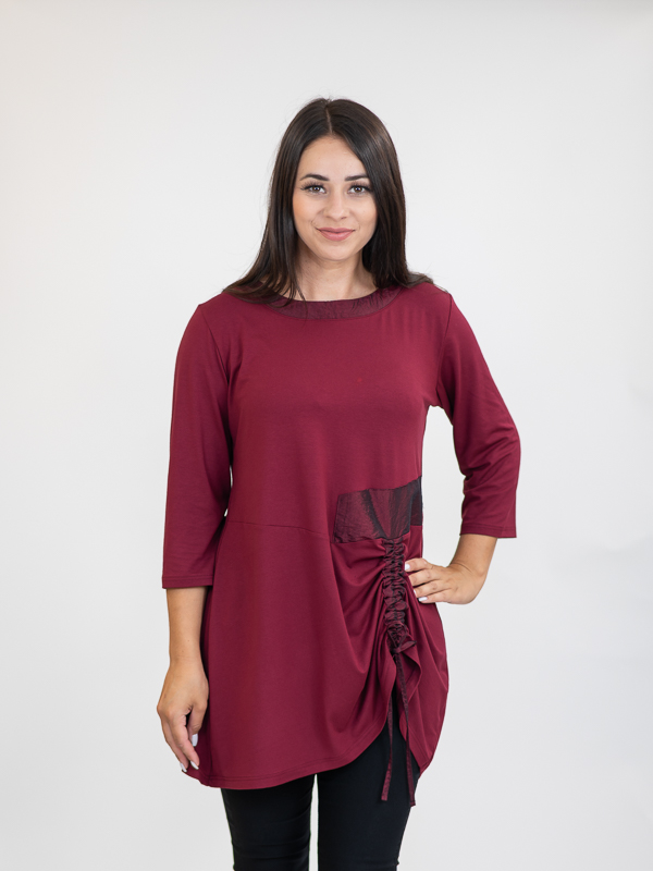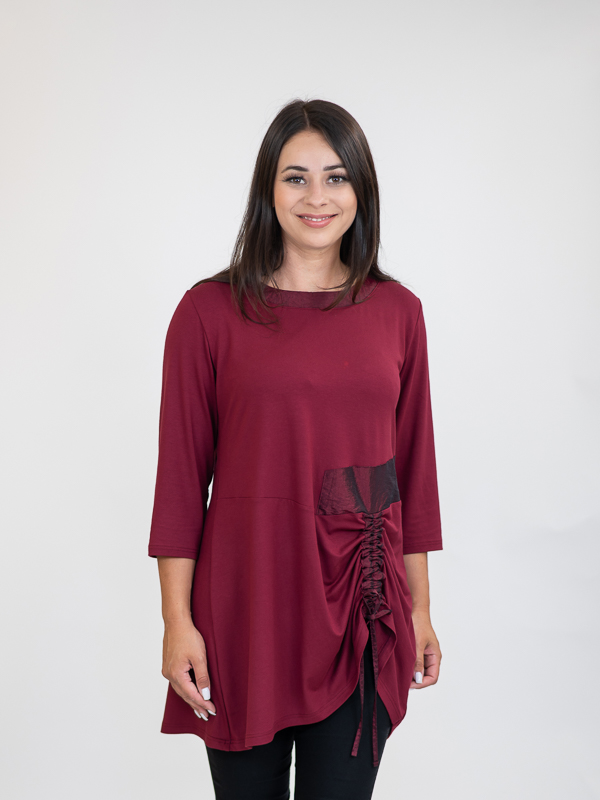 viskoza 92%, elastan 8%, umetak: poliester 100%, skupljanje: po širini i po dužini do 3%, Prati i glačati po unutarnjoj strani tkanine.
