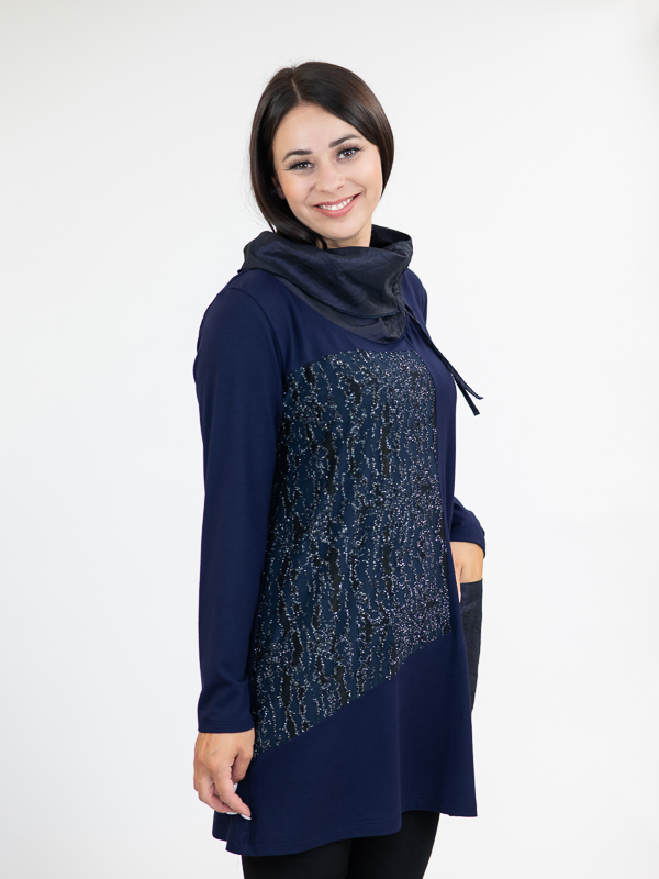 viskoza 92%, elastan 8%, umetak: poliester 100%,  skupljanje: po širini i po dužini do 3%, Prati i glačati po unutarnjoj strani tkanine.