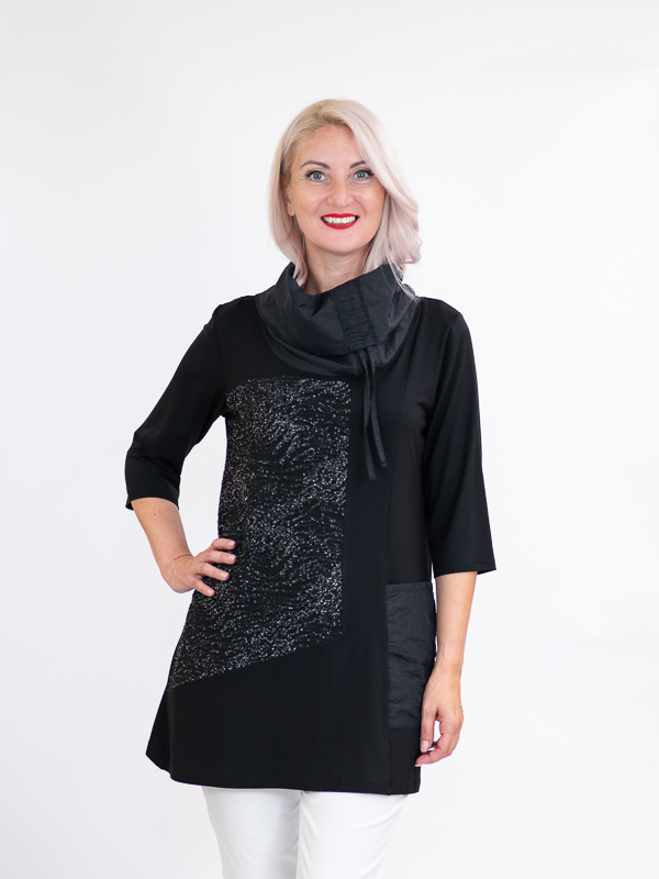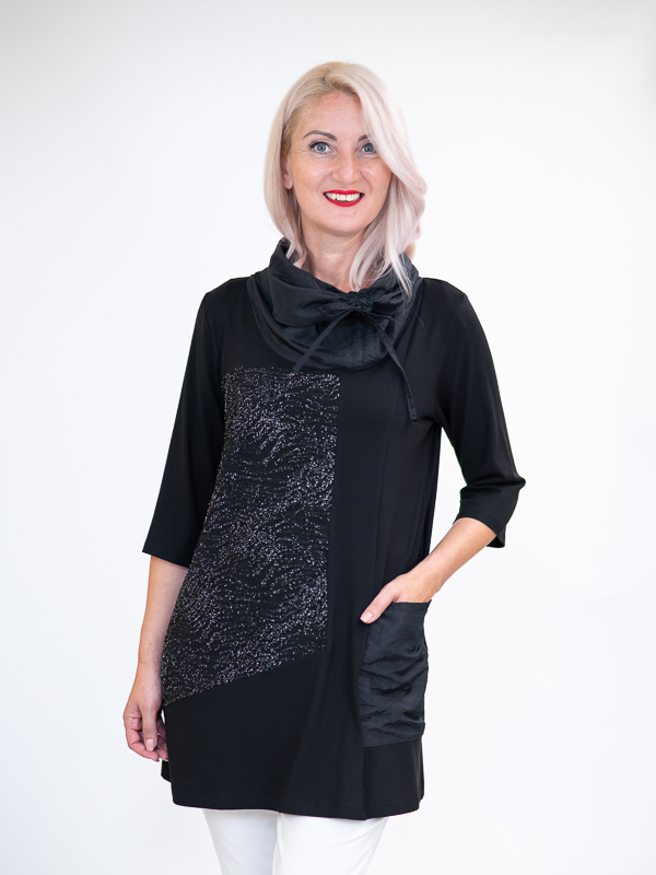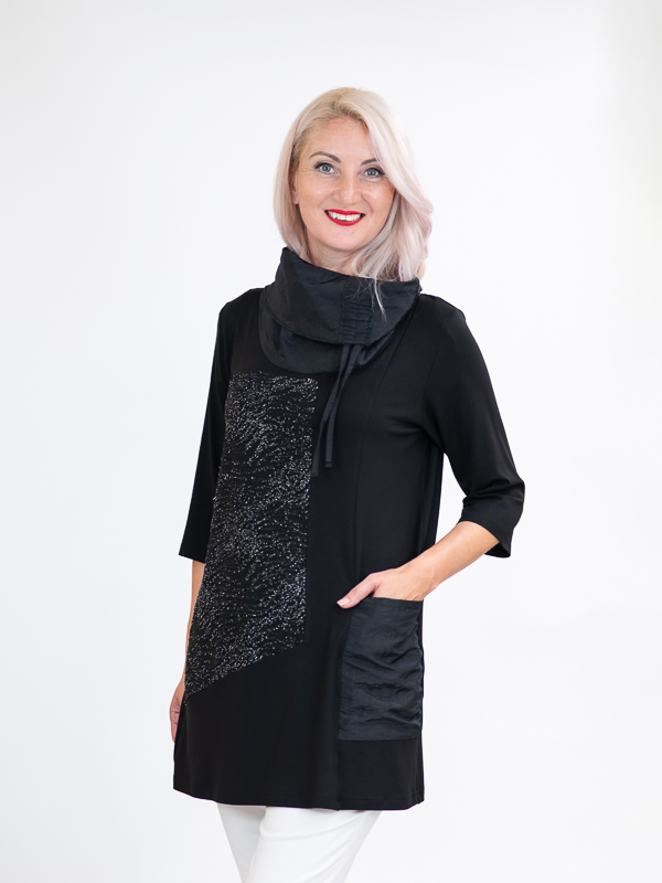 viskoza 92%, elastan 8%, umetak: poliester 100%, skupljanje: po širini i po dužini do 3%, Prati i glačati po unutarnjoj strani tkanine.
